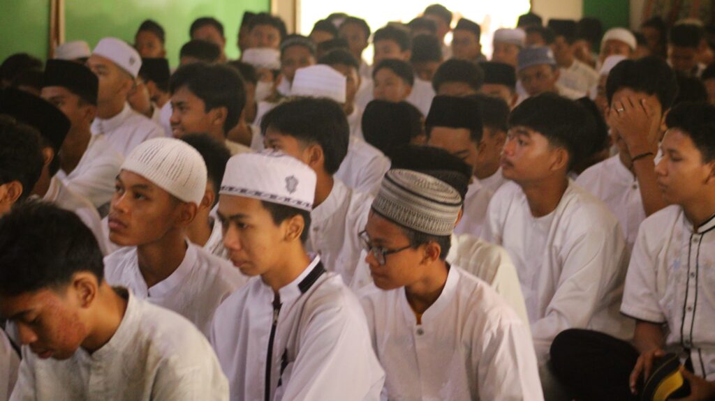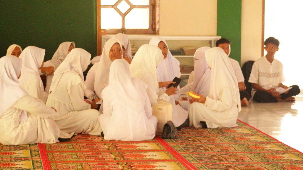 Sambil menunggu Habib Fahmi datang anggota rohis bershalawat terlebih dahulu