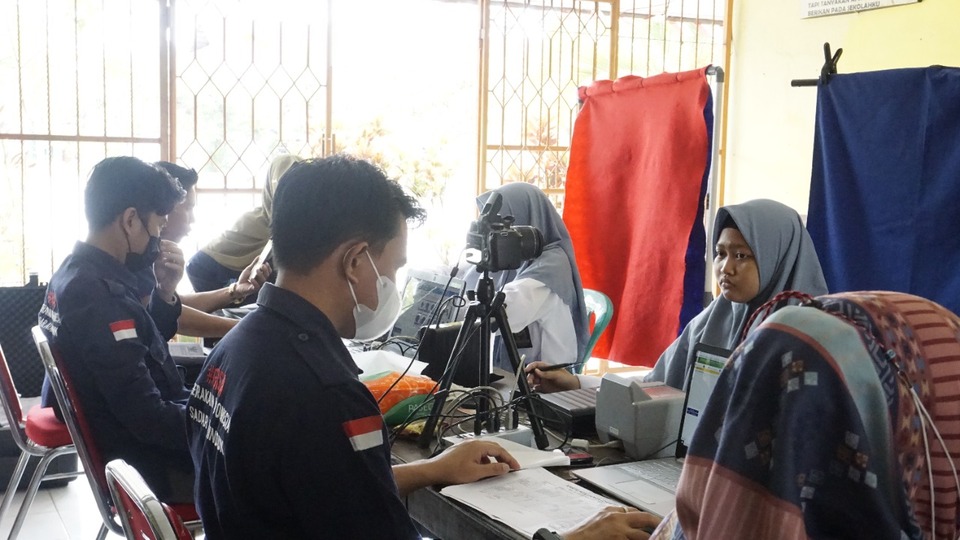 Foto e-KTP di SMA Negeri 2 Berau kali ini, siswa yang sudah berusia 16 tahun sudah boleh mengikuti perekaman e-KTP tetapi KTPnya baru bisa diambil setelah berusia 17 tahun. Siswa yang melakukan perekaman e-ktp pada hari Selasa ini kurang lebih 200 siswa SMA Negeri 2 Berau. Terlihat siswa sedang melakukan pendataan Identitas untuk proses pembuatan KTP-EL.