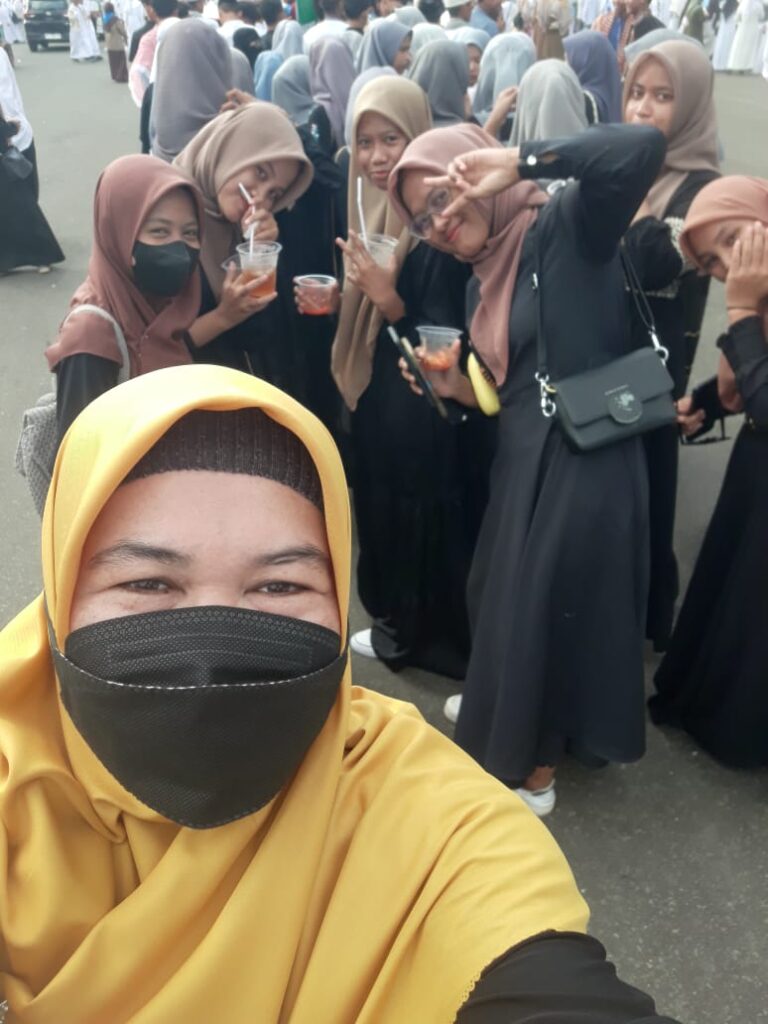 Ibu Nuraeni berselfie dengan siswa